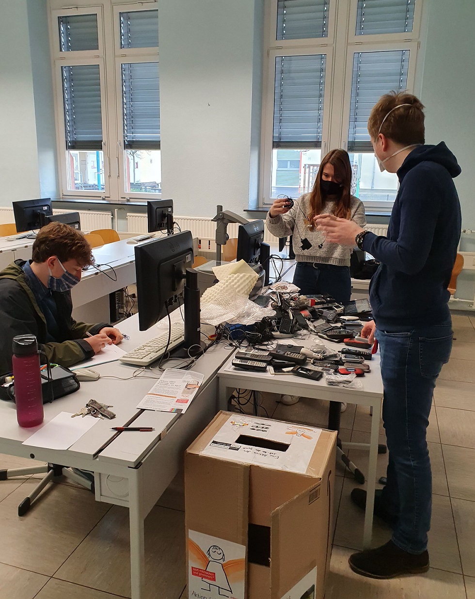 Die SoR-AG konnte ihre Sammelbox, die bereits vorher zugängig war, gefüllt mit ca. 120 Handys an den Weltladen in Traben übergeben.