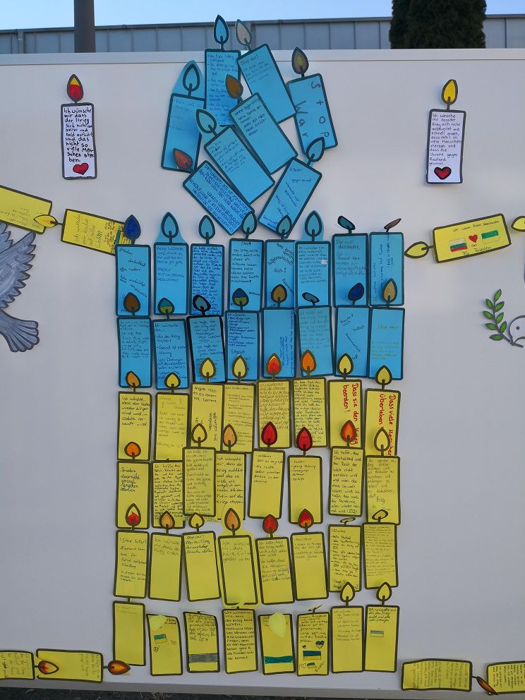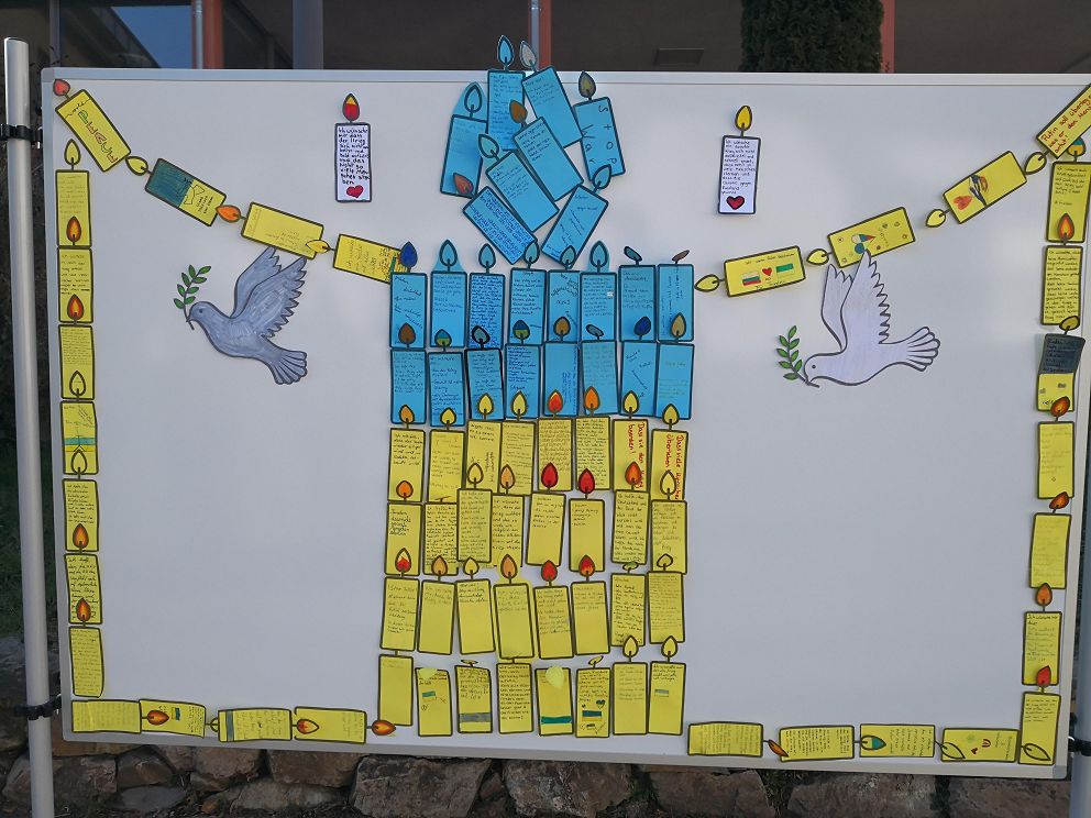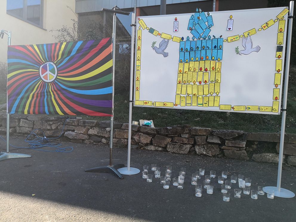 Bei schönstem Sonnenschein und andächtiger Stimmung verlieh die Schulgemeinschaft so der Hoffnung Ausdruck, dass das Leid der ukrainischen und russischen Bevölkerung durch eine baldige Beendigung des Krieges aufhören möge.
