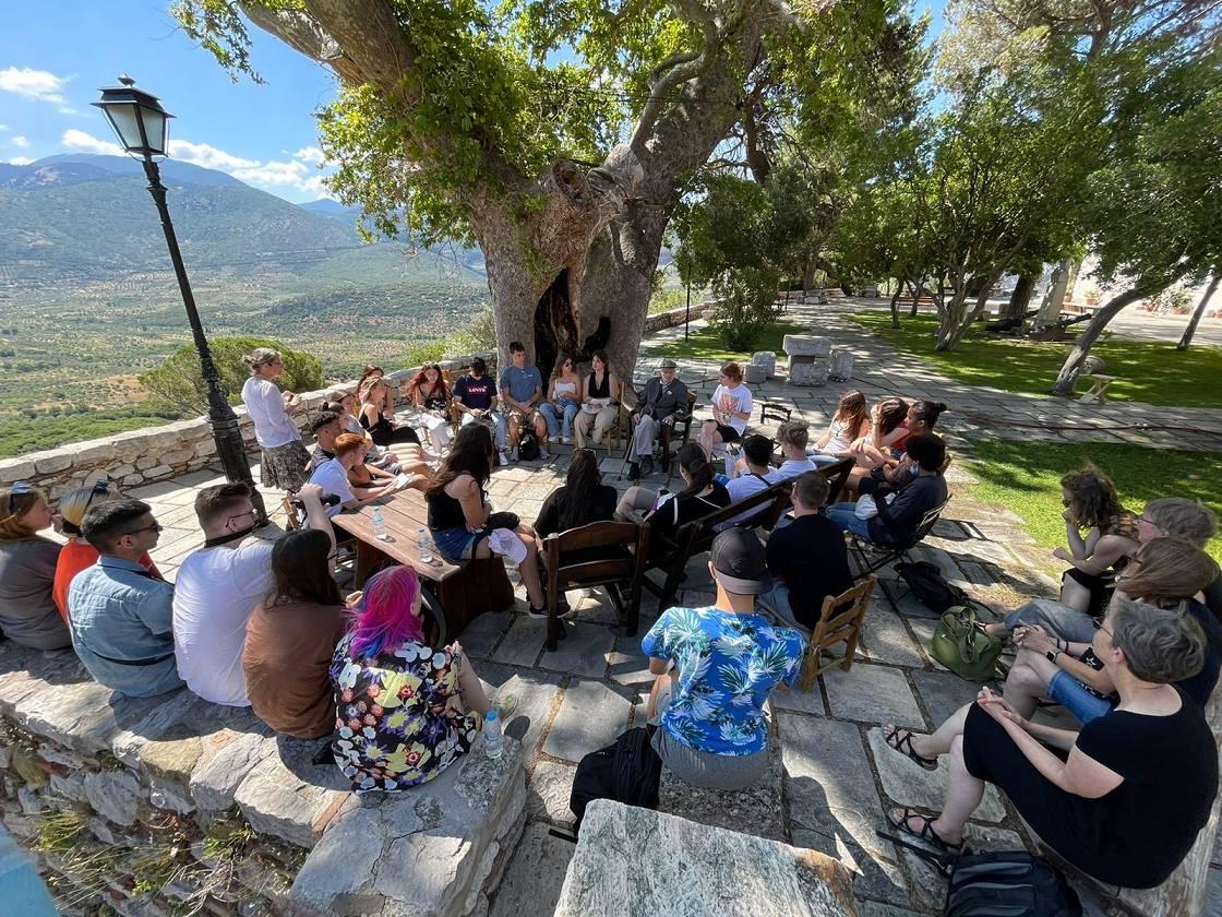 Ziele waren der intensive Austausch und die Vorbereitung des Aufenthaltes des Leistungskurses Geschichte im April 2023. Dabei konnten Anette Heintzen, Hilke Müller, und Nicole Ingrillini unmittelbar mögliche Programmpunkte erfahren, denn glücklicherweise fand gleichzeitig der Aufenthalt einer Schülergruppen der DSA-Partnerschule aus Berlin, der Fritz-Karsen-Schule, statt. So konnten die Kolleginnen an den gemeinsamen Aktionen und Workshops der „DSA-Erinnert-AG“ zusammen mit den Berliner Schülern teilnehmen und dadurch einen lebendigen Vorgeschmack auf das Programm im April des nächsten Jahres bekommen, wenn die Gymnasiasten aus Traben-Trarbach in Athen sein werden. „Da ist konkretes Planen natürlich viel leichter!“, stellte Frau Müller, am Moselgymnasium für die Erasmusplanungen zuständig, zufrieden fest. „Wir konnten die Programmpunkte hautnah erleben!“