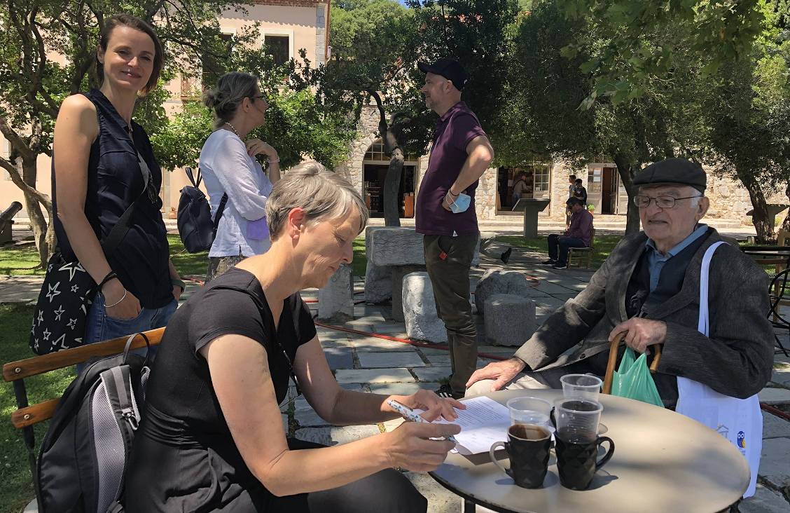 Ob der Besuch der Schule, der Akropolis (für einen Geschichts-LK ein Muss) oder des jüdischen Museums Athen, bei diesem Arbeitsbesuch der Lehrerinnen waren die Eindrücke intensiv und vielfältig. Höhepunkt aber – auch und gerade in emotionaler Hinsicht – war das Zeitzeugengespräch mit Argyris Sfountouris, der manchen noch aus seinem Auftritt bei der Sendung „Die Anstalt“ (31.03.2015) bekannt sein mag.