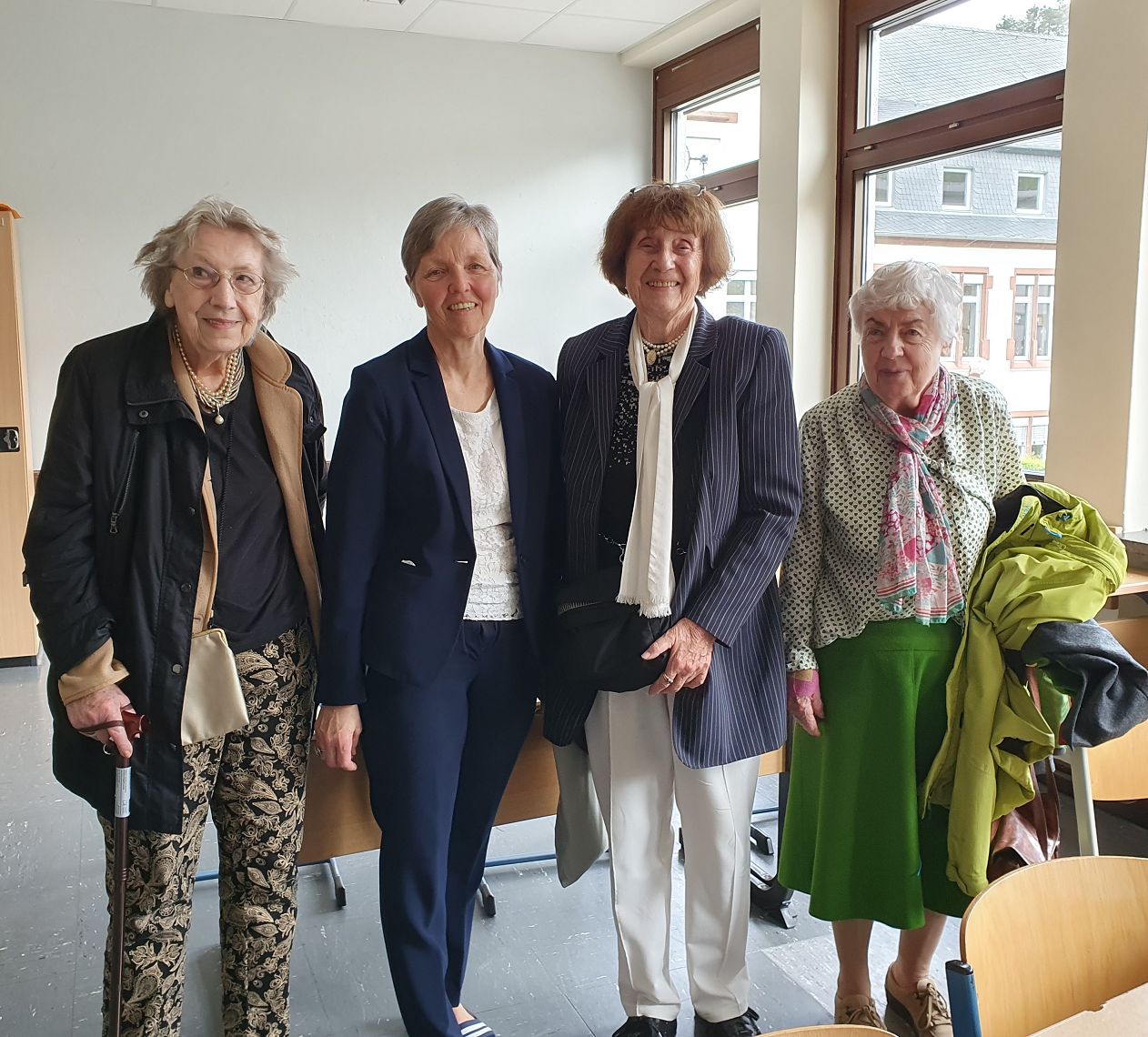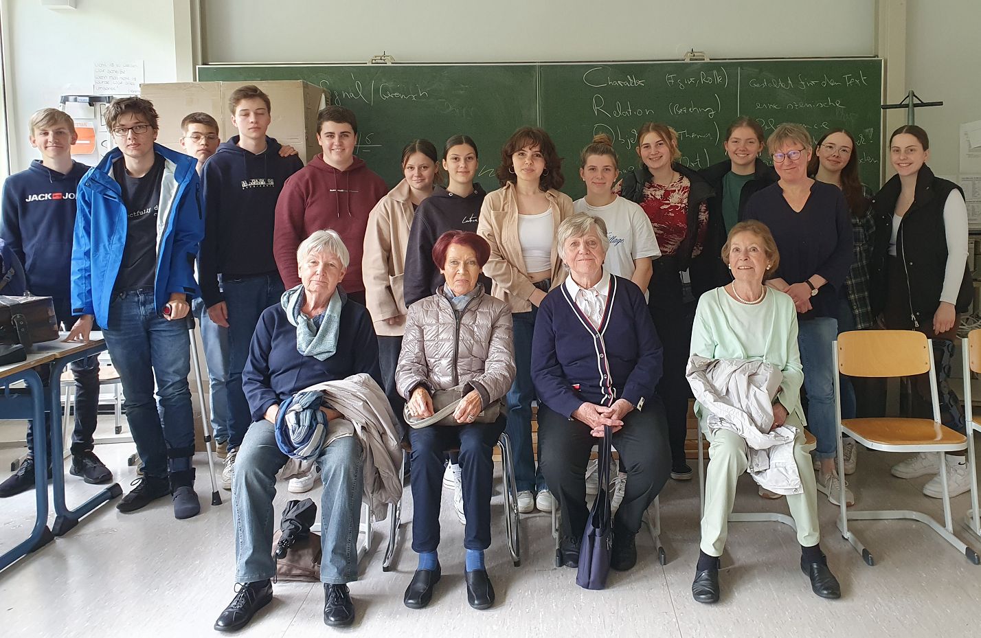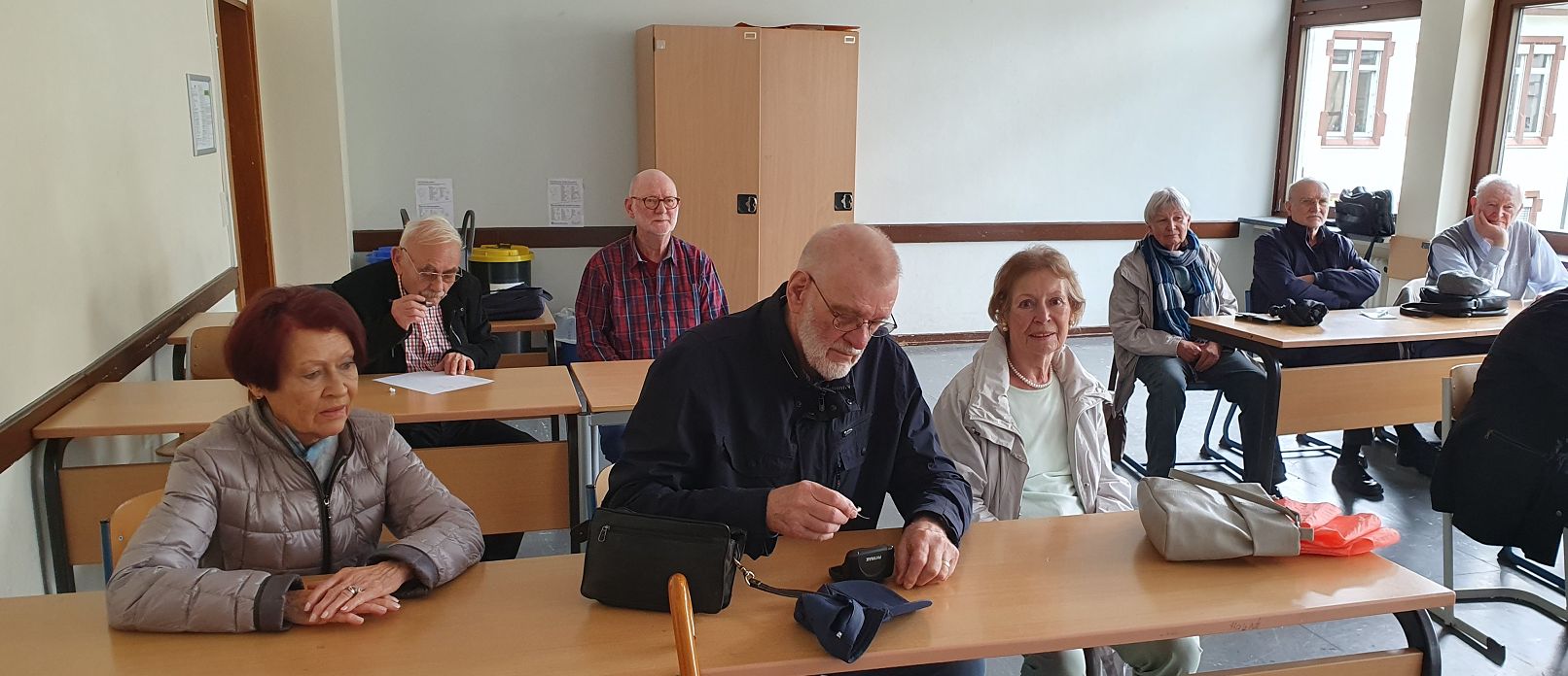 12 Abiturientinnen und Abiturienten der Abitur-Jahrgänge 1955, 1962 und 1963 besuchten das GymTT, bestaunten die moderne digitale Ausstattung der Klassenräume und nutzten die Gelegenheit, an verschiedenen Unterrichten teilzunehmen, um sich einen Eindruck von „Schule heute“ zu verschaffen. Sichtlich beeindruckt zeigten sich die interessierten Absolventen von den heutigen Möglichkeiten und von den Fächern „Darstellendes Spiel“ und Chemie. Götz Eberle (Jg. 63), der im Englisch-Unterricht der Klasse 9a hospitierte, stand den Schülerinnen und Schülern Rede und Antwort, was seine Jugend und Schulzeit anging. Er zeigte sich sehr bewegt von den anregenden Gesprächen mit den Jugendlichen. Außerdem gab es regen Austausch mit Kolleginnen und Kollegen besonders über die Unterschiede von früher zu heute – und da durfte die ein oder andere Anekdote natürlich nicht fehlen. Die Damen und Herren des Jahrgangs 1955 freuten sich besonders, ihr altes Klassenzimmer wiederzusehen, das heute das Sekretariat ist, und waren begeistert, dass man Ihnen am Moselgymnasium so viel Zeit widmete. Einige genossen nach diesen Eindrücken und Gesprächen noch ein Drei-Gänge-Menü in der Mensa.