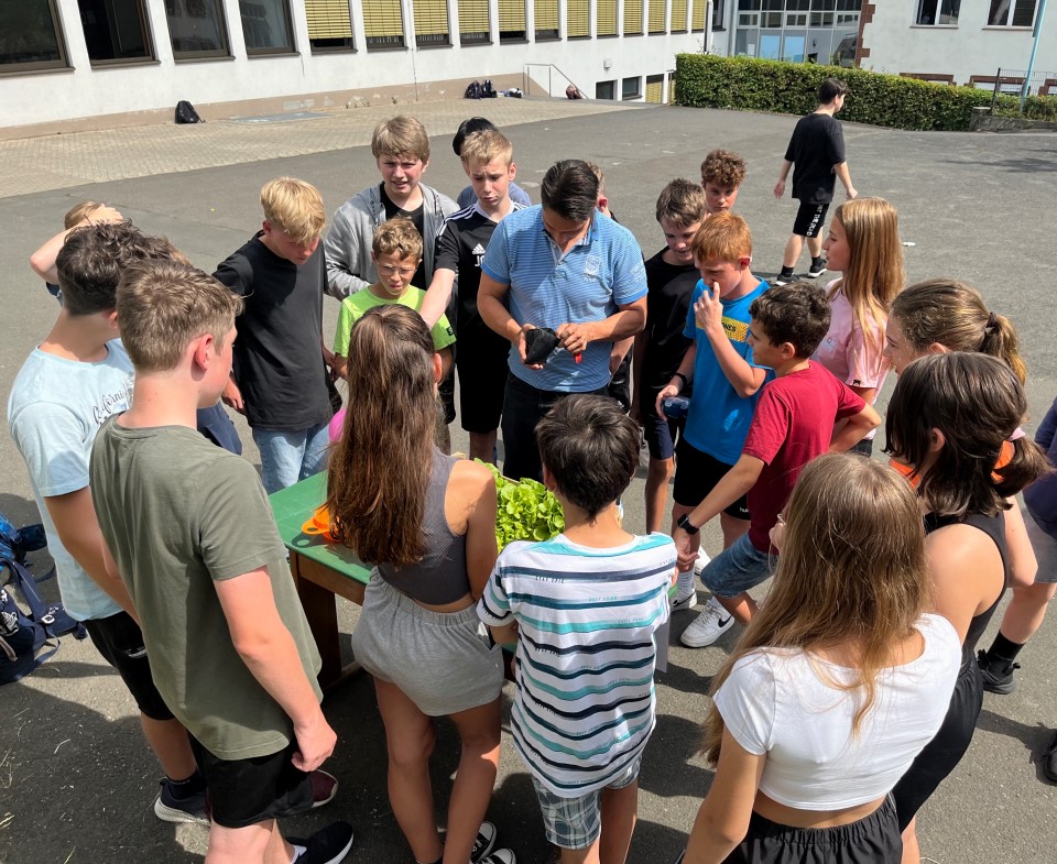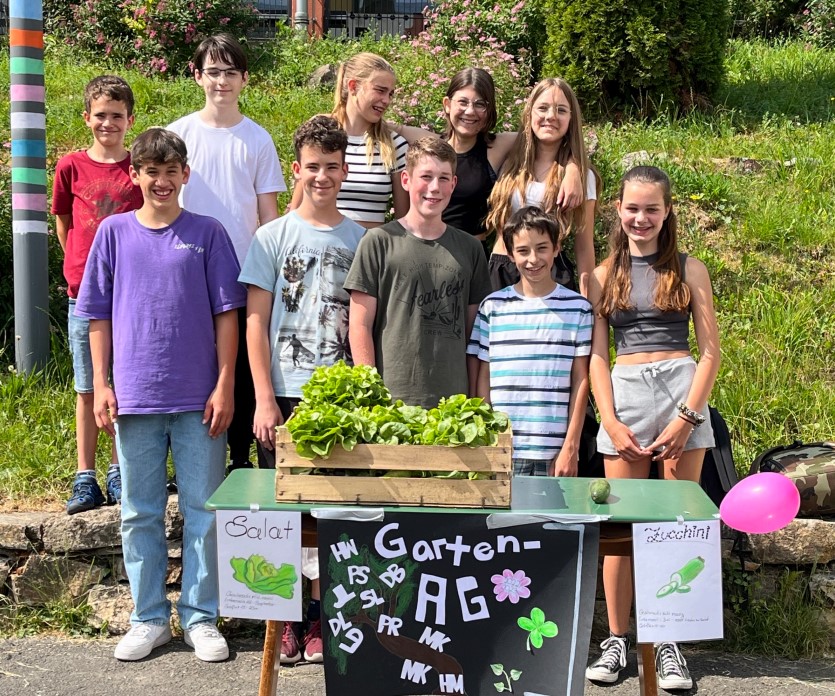 Die Garten-AG unseres Gymnasiums konnte erfolgreich ihren ersten Ernteertrag der Schulgemeinschaft anbieten. Neben üppigen Salatköpfen konnte auch die erste Zucchini verkauft werden.