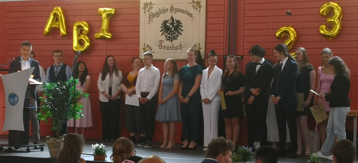 Traben-Trarbach. In würdiger Atmosphäre erlebten die Abiturientinnen und Abiturienten des Gymnasiums Traben-Trarbach am 7.7.23 den Höhepunkt und Abschluss ihrer Schulzeit: die Abiturentlassfeier in der Turnhalle des Moselgymnasiums. Sie erhielten ihr wohlverdientes Reifezeugnis in einem ganz besonderen Jahr – dem 450. Jahrestag der Gründung der Schule im Jahr 1573 und finden sich somit in einer langen Reihe von Schülerinnen und Schülern wieder, die an dieser traditionsreichen Schule ihr Abitur absolviert haben, so Schulleiter Jochen Wiedemann.