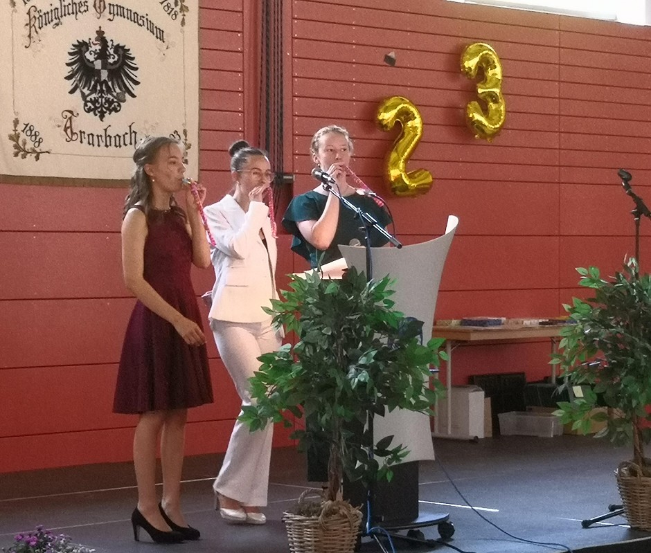 „A little party never killed our Abi!“, hieß dann auch passenderweise das diesjährige Abi-Motto, und Grund zum Feiern gab es genug: Umrahmt von der Musik der Big Band erhielten 21 Schülerinnen und 11 Schüler die allgemeine Hochschulreife: Sieben Abiturergebnisse hatten eine 1 vor dem Komma und 42 Prozent hatten einen Schnitt zwischen 2 und 2,5. In den Abiturprüfungen wurde vier Mal die Höchstnote 15 Punkte erreicht. So hatte die Abiturientia dieses Jahrgangs allen Grund zum Feiern.