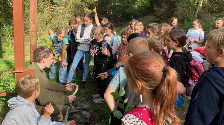 Es ist gute Tradition, dass die Fünftklässler des Gymnasiums Traben-Trarbach in der dritten Schulwoche ins Jugendhüttendorf nach Manderscheid fahren. Diese Fahrt stellt den Abschluss der ersten Phase der Eingewöhnung der jungen Schülerinnen und Schüler dar. Zuvor waren sie am 4. September eingeschult worden: Die 59 Kinder erlebten einen ökumenischen Gottesdienst unter dem Motto „Sternenhimmel“, lernten ihre Klassen und Lehrer kennen und durften die Schule erkunden. Nach diesen ereignisreichen und spannenden zwei Wochen fuhren die 5er auf Klassenfahrt nach Manderscheid. Dort erwartete die frisch gebackenen Gymnasiasten ein buntes und interessantes Programm. Natürlich ging es darum, sich noch besser kennen zu lernen, aber auch das Erleben spielte eine große Rolle: Erst gab es eine waldpädagogische Führung mit einem Förster des Forstamtes Daun, eine Nachtwanderung bedeutete Nervenkitzel für die Kinder und die Niederburg galt es zu entdecken.