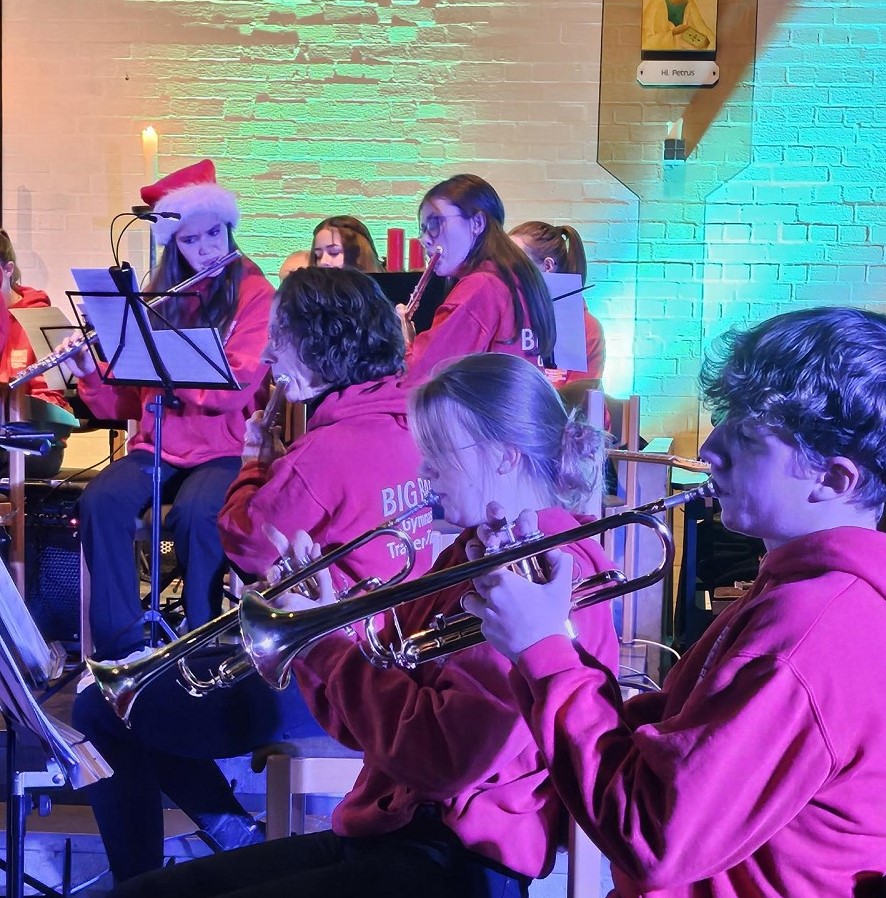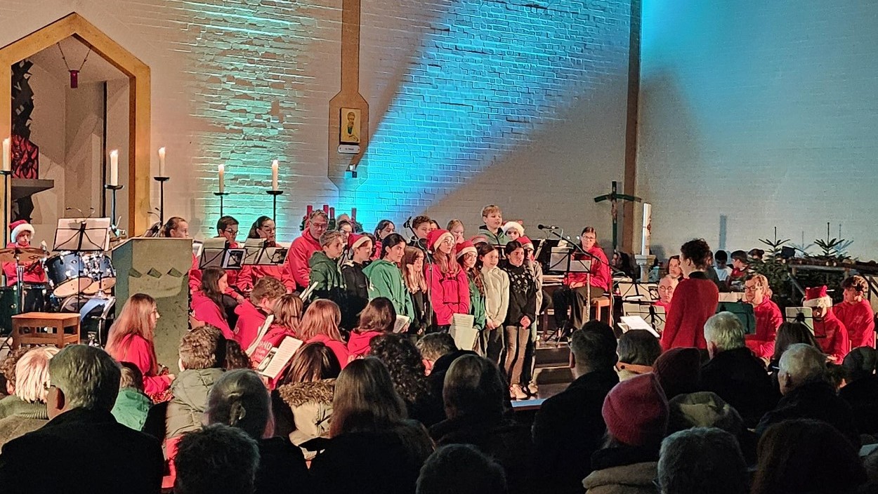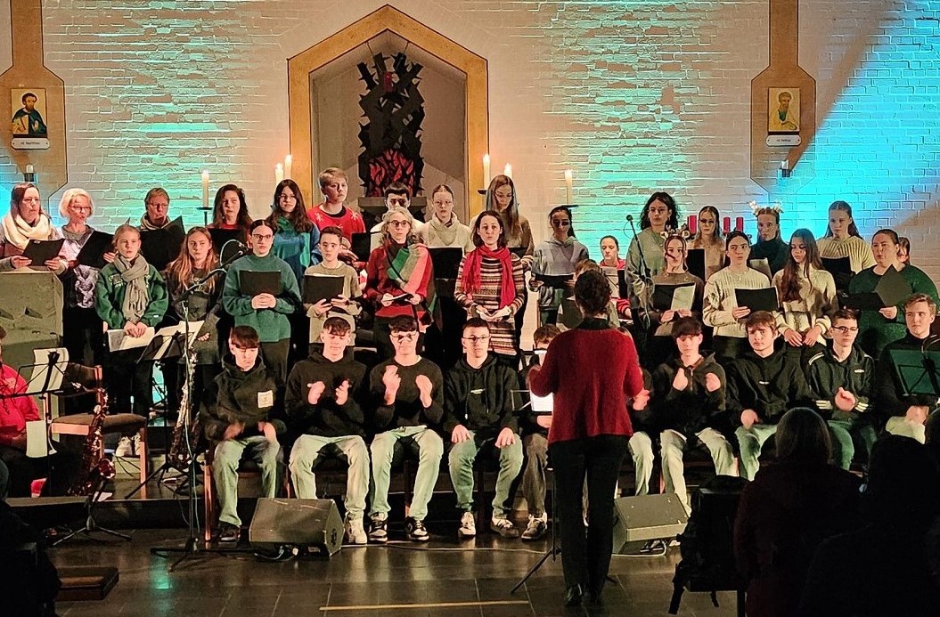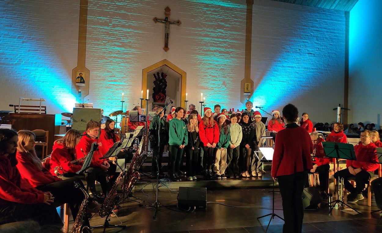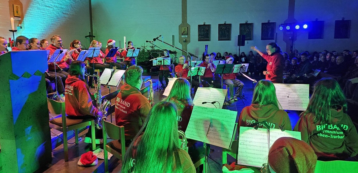 Unter dem Titel „The Sound of Heaven“ präsentierte das Gymnasium Traben-Trarbach das traditionelle Weihnachtskonzert am letzten Dienstag vor den Weihnachtsferien endlich wieder in der Pfarrkirche St. Nikolaus in Trarbach, nachdem es wegen Corona drei Jahre pausieren musste. Besonders erfreulich war dies, da das festliche Konzert den Abschluss des Jubiläumsjahres zur 450-Jahrfeier des Moselgymnasiums bildete. Nicht zuletzt aus diesem Grund präsentierte die Fachschaft Musik ein großes Aufgebot an schulischen Ensembles, Chören, Musikklassen, Solisten und der Big Band, sodass in der Trarbacher Kirche ein imposanter und besinnlicher Zauber von Weihnachten entstand, an dem ein großer Teil der Schulgemeinschaft beteiligt war. Schulleiter Jochen Wiedemann zeigte sich besonders erfreut darüber, dass auch so viele ehemalige SchülerInnen und KollegInnen sich als Beteiligte oder Gäste in der katholischen Kirche einfanden.Und das Programm konnte sich sehen lassen: Von Klassikern wie „Jingle Bells“, „Oh du fröhliche“ oder „Rudolph The Red-Nosed Reindeer“ über „Ave Maria“ und „Gloria“ bis hin zu „Sound of Silence“ und „Stairway To Heaven“ genossen die zahlreichen Zuschauer ein abwechslungsreiches musikalisches Programm aus drei Jahrhunderten in der gut gefüllten Pfarrkirche. Die besinnliche Atmosphäre wäre kaum möglich gewesen ohne den Einsatz des Technik-Teams unter der Leitung von Achim Peters, das die Interpreten ton- und lichttechnisch unterstützte. Besonderer Dank gilt der Fachschaft Musik mit Frauke Rochlitzer und Marieke de Winkel für die Vorbereitung und die Leitung des Konzertabends.