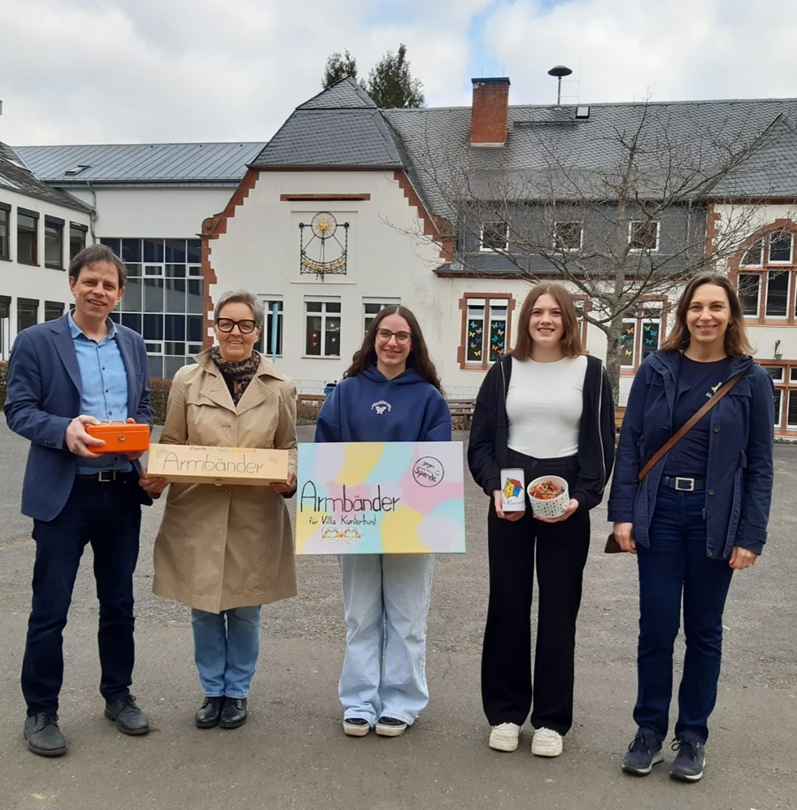 Nach dem erfolgreichen Flechten von Bändchen für eine ukrainische Familie 2022 hatten die beiden beschlossen, erneut Bändchen zu knüpfen und damit die Villa Kunterbunt des Klinikums Mutterhaus zu unterstützen, einem Nachsorgezentrum für krebs-, chronisch- und schwerstkranke Kinder sowie deren Familien in der Region Trier. Auslöser war ein schwersterkranktes Kleinkind im Freundeskreis. Die partnerschaftliche Verbindung zwischen dem Gymnasium Traben-Trarbach und der Villa Kunterbunt besteht bereits seit längerem.