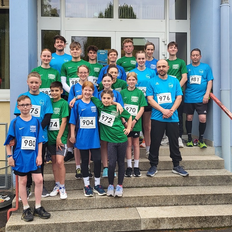 Team 1: 8 motivierte Schülerinnen und Schüler der Klassen 5 und 7 liefen die 2,2 km lange Strecke. Für das Gymnasium waren Filip Maciejczyk, Mats Merker und Vince Westphal (5a), Evi Brautlecht, Luisa Schneiders, Samantha Hamm, Malina Burg und Sophia Kakrinska (7a und 7b) am Start und holten alles aus sich heraus.