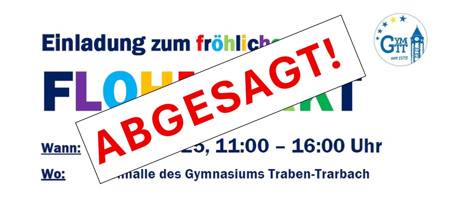 Mangels Teilnehmerzahl muss der „Fröhliche Flohmarkt“ des Gymnasiums, der am Samstag, dem 8.11.2025 in unserer Sporthalle stattfinden sollte, leider abgesagt werden:-(