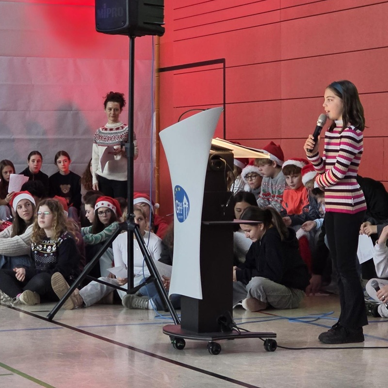 Für besondere Momente sorgte die Geschichte vom Grinch, die sowohl auf Englisch als auch auf Deutsch vorgetragen wurde, ebenso wie ein Weihnachtsgedicht, das zum Innehalten einlud. Musikalisch abgerundet wurde das Programm durch die „kleine Big Band“, die mit ihren Klängen für Wärme und Schwung sorgte.
